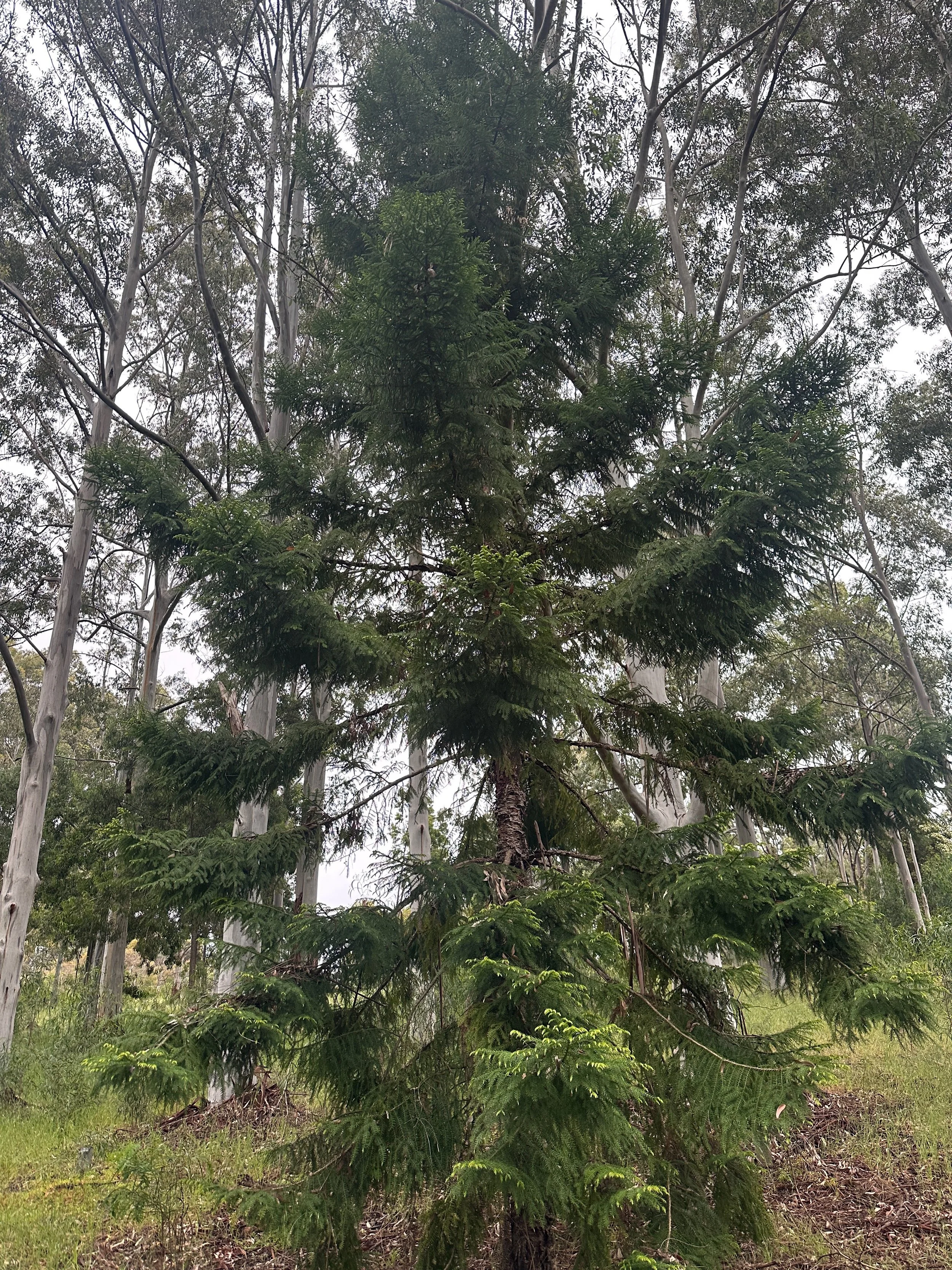 Araucaria cunninghamii is a cone-shaped tree with a highly symmetric shape that grows up to 60 m.